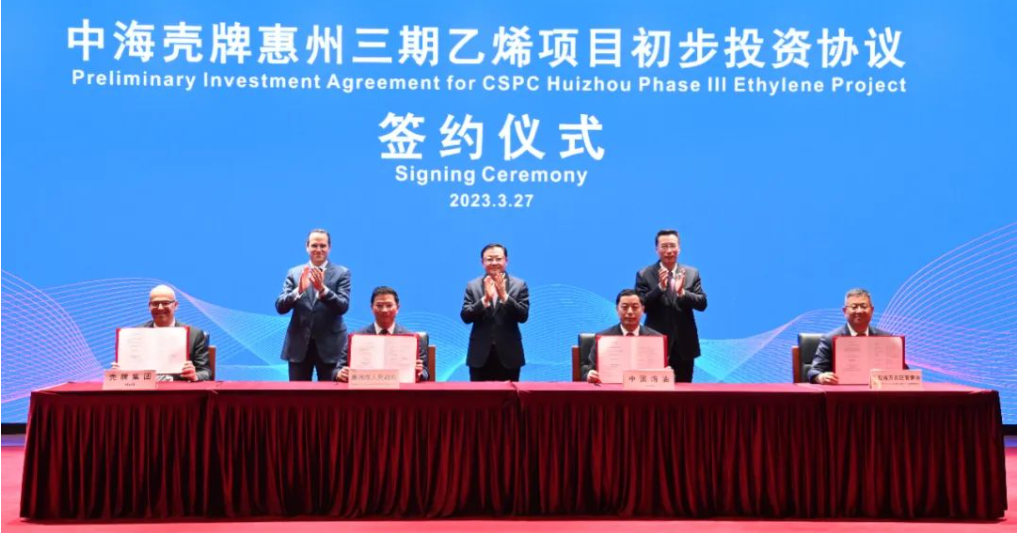 3月27日,中海殼牌惠州三期乙烯項目初步投資協(xié)議簽約儀式在北京中國海油大廈舉行。廣東省省委副書記、省長王偉中,中國海油董事長汪東進,殼牌集團首席執(zhí)行官魏斯旺等出席活動。