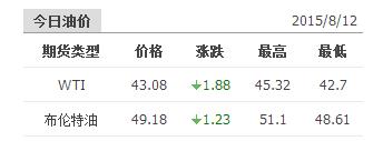 2015年8月12日國(guó)際原油價(jià)格表
